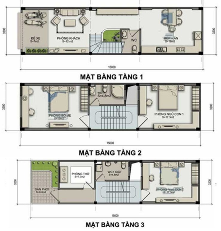 Gợi ý giải pháp thiết kế nhà ống 3 tầng 3x15m mặt tiền hẹp nổi bật hơn