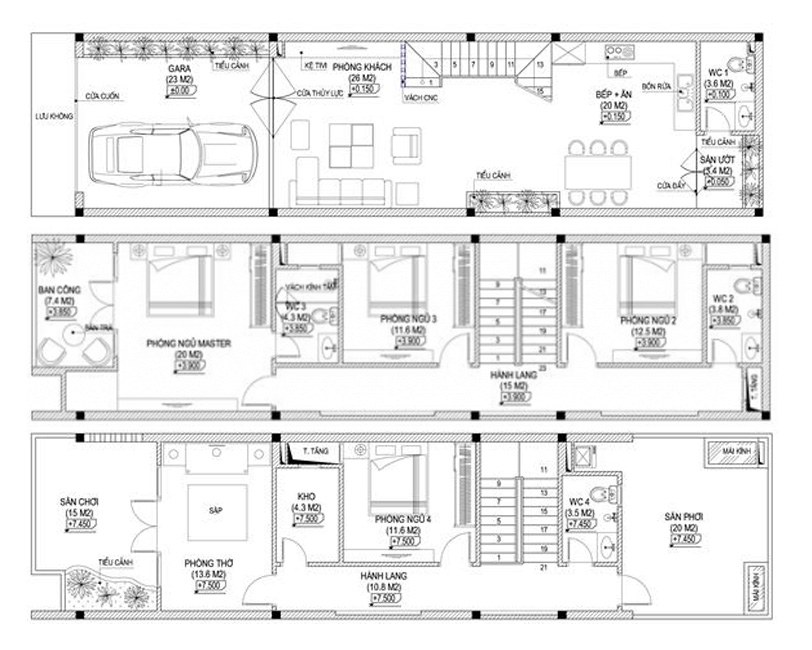 Tham khảo những mẫu thiết kế nhà ống 3 tầng 3x15m đẹp hiện đại