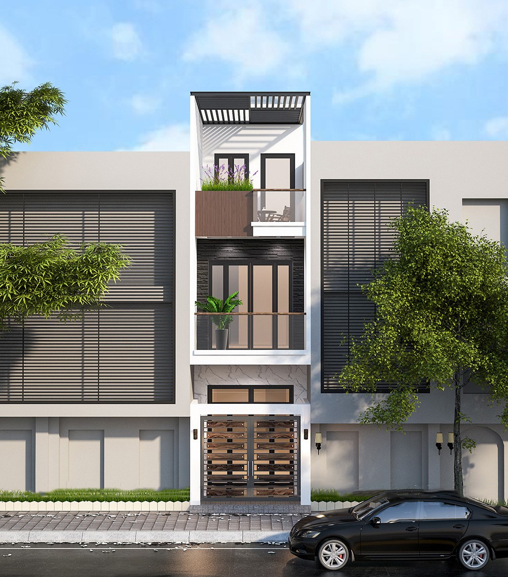 Phối cảnh kiến trúc nhà ống hiện đại đáp ứng yêu cầu của gia chủ